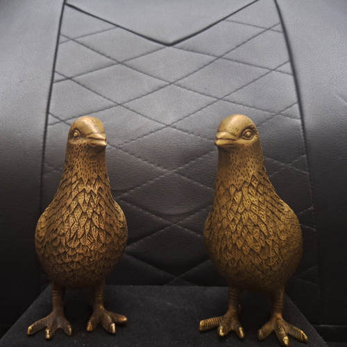 این جفت مجسمه برنزی کلکسیونی ساخت کشور چین بصورت کبوتر یا قمری خواهد بود و مزیت جفت بودن آنها این است که بصورت مکملی است یعنی سر یکی به سمت راست و دیگری به سمت چپ است. معمولاً طرح کبوتر بسبب خلوص و سادگی آن حس و حال صنایع دستی را دارد. قابل اشاره است این مجسمه ساخت جاهای دیگر دارد که بصورت روشن تر و پرها از یکدیگر بخوبی مجزا نیستند. طول هر مجسمه 18 و ارتفاع 15 سانتی متر و وزن هر یک 600 گرم خواهد بود.